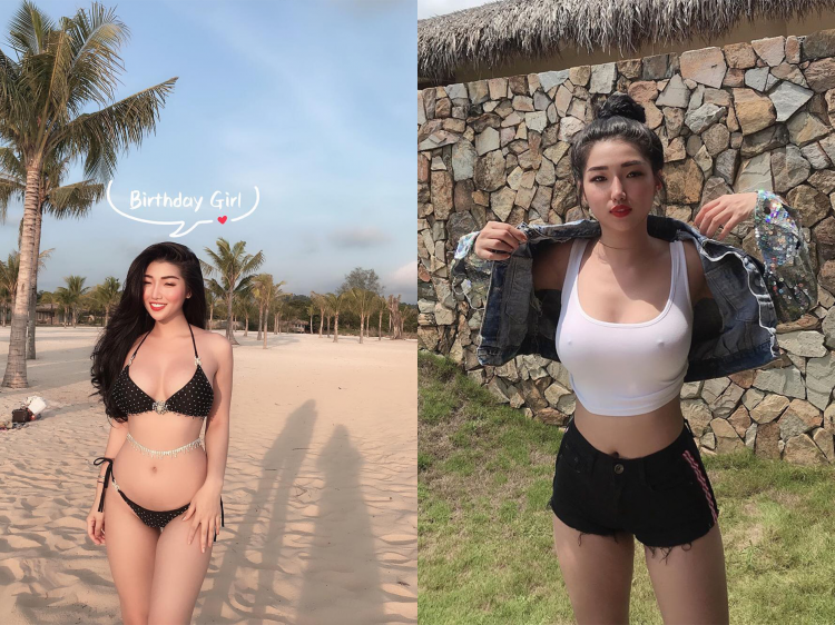 東方精緻臉孔搭配西方大乳牛!T恤下擋不住的兩粒!